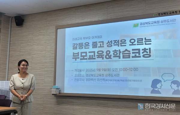 [한국강사신문 정헌희 기자] 경상북도교육청 상주도서관은 지난 9월 9일(화)부터 10월 14일(화) 까지 ‘미래교육 학부모 아카데미’의 일환으로 진행된 ‘부모교육 & 학습코칭’ 5주 과정을 성황리에 마무리했다고 밝혔다.